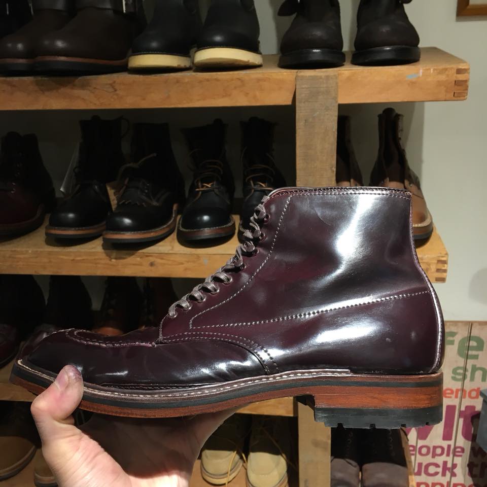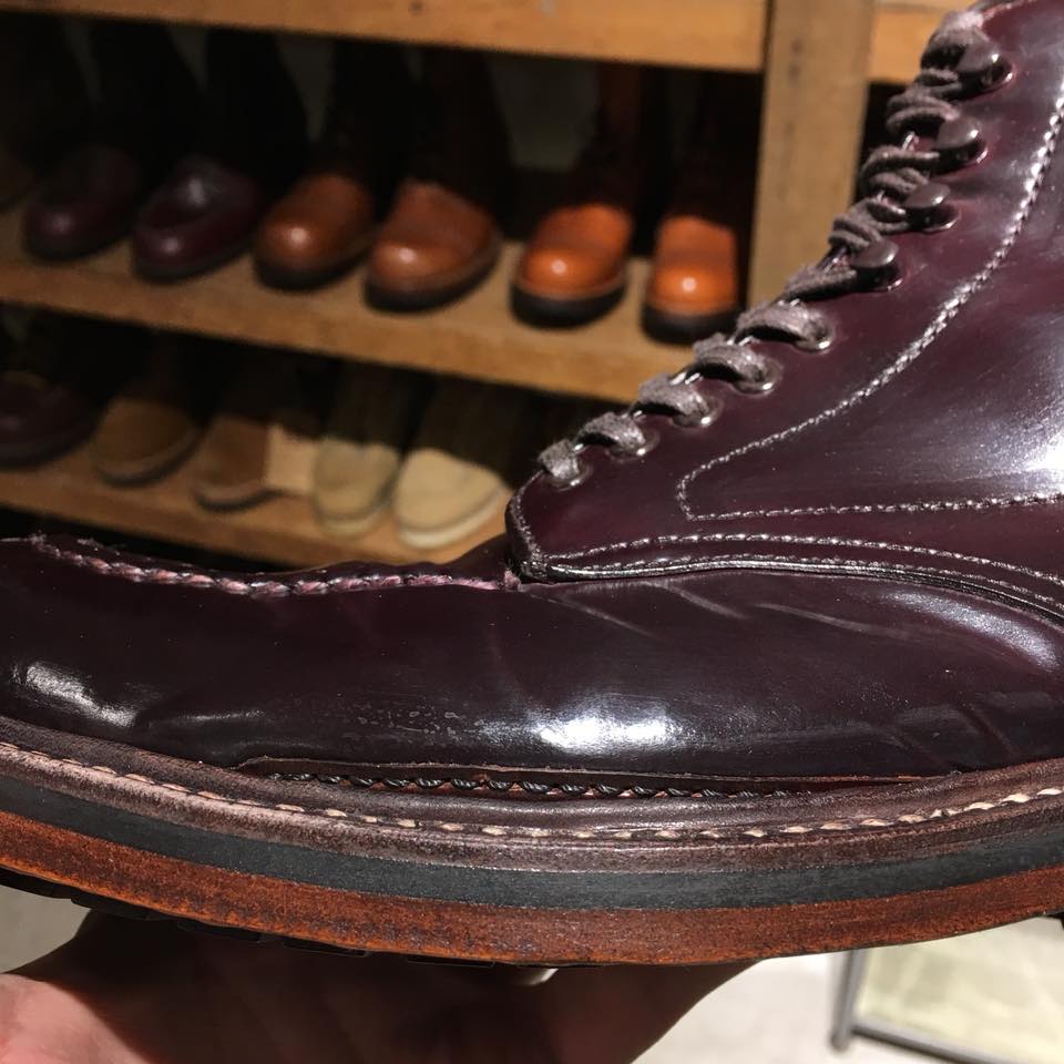 這雙 Tanker Boots 經過了內線補強作業後,沿條、大底緊接著安裝上,這次客人選配了我們的 #1150 Urban Explorer 及 #1160 Urban Explorer Whole Heel,經過最後的拋光及邊色處理後,整雙鞋又恢復了。